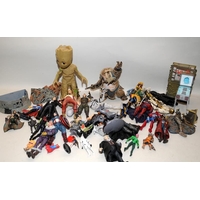 A collection of action figures from various franchises, Star Wars, Marvel, DC Comics etc